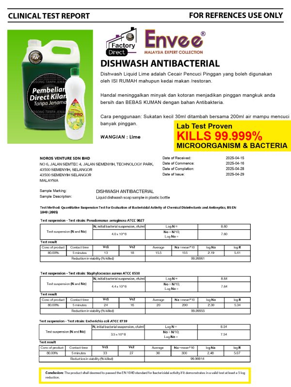 ENVEE Mypro Dishwash is a Dishwashing Liquid that can be used by HOMES and restaurants.
