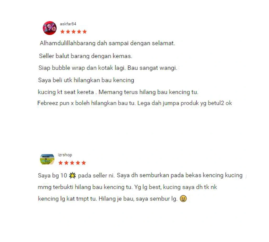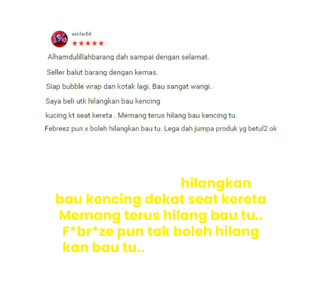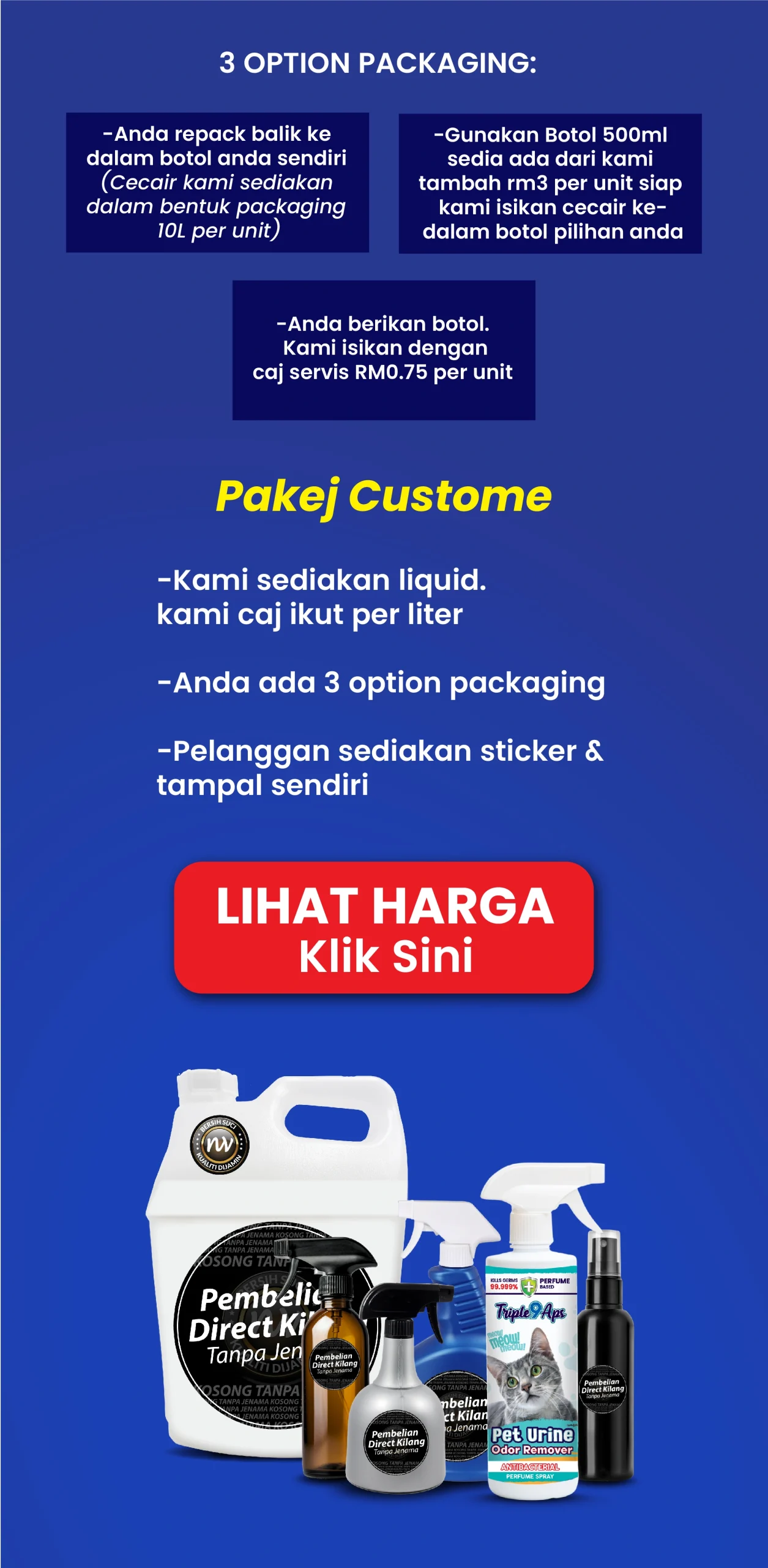 Jika untuk permukaan, guna muncing SPRAY, dan sembur beberapa kali di kawasan terkena kencing kucing. Jika untuk resapan contohnya di tilam /sofa, gunakan muncung STREAM dahulu, tekan kedalam beberapa kali supaya meresap kedalam, dan kemudian baru guna muncung SPRAY untuk permukaan. Berapa banyak adalah subjektif bergantung berapa banyak / berapa luas / berapa lama kencing kucing itu terjadi.