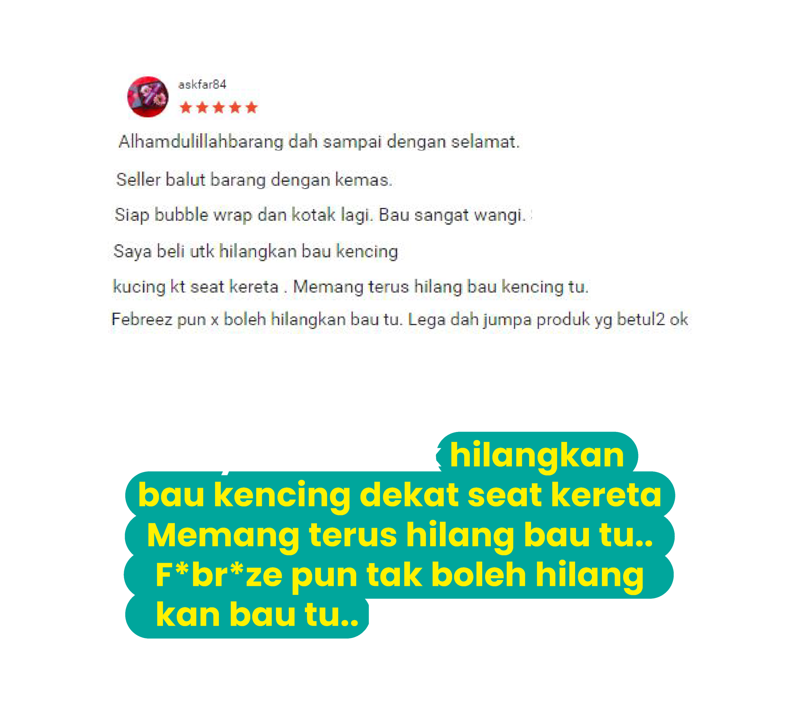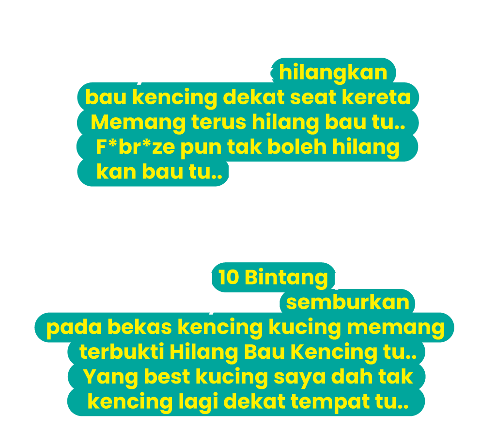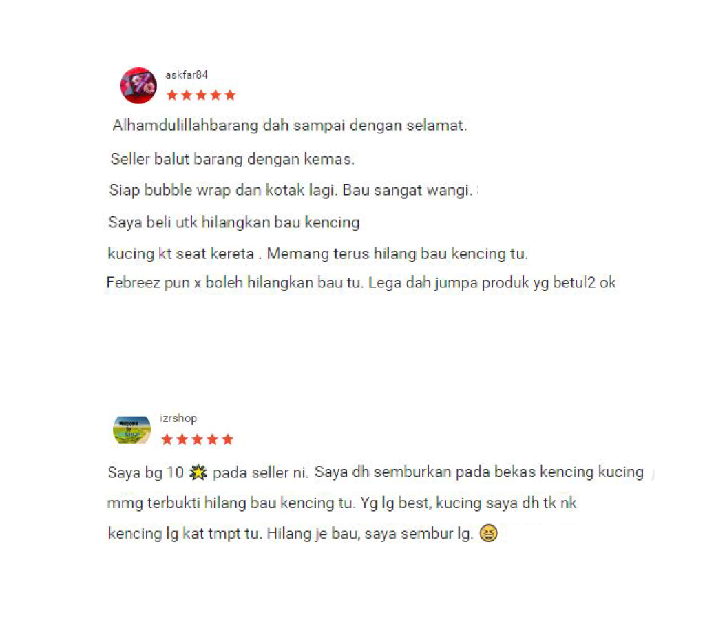 Jika untuk permukaan, guna muncing SPRAY, dan sembur beberapa kali di kawasan terkena kencing kucing. Jika untuk resapan contohnya di tilam /sofa, gunakan muncung STREAM dahulu, tekan kedalam beberapa kali supaya meresap kedalam, dan kemudian baru guna muncung SPRAY untuk permukaan. Berapa banyak adalah subjektif bergantung berapa banyak / berapa luas / berapa lama kencing kucing itu terjadi.